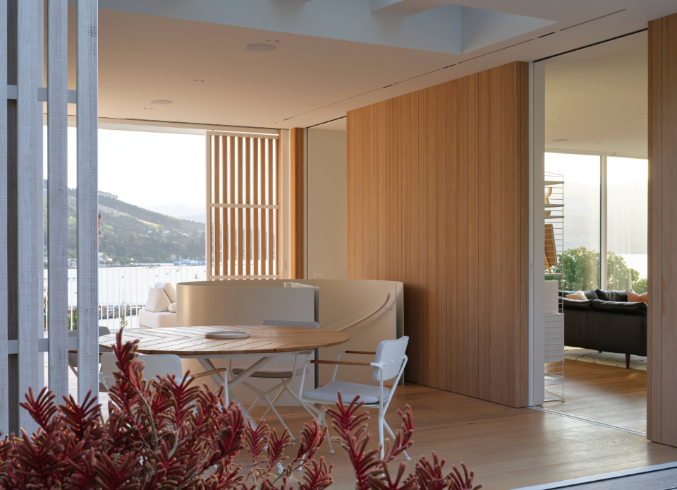 In a private perch overlooking the Akaroa harbour, the Lighthouse is a contemporary take on the traditional bach, informed by Californian Modernism. Arranged over two floors, a sculptural spiral staircase through the home’s core connects the living and sleeping zones.
