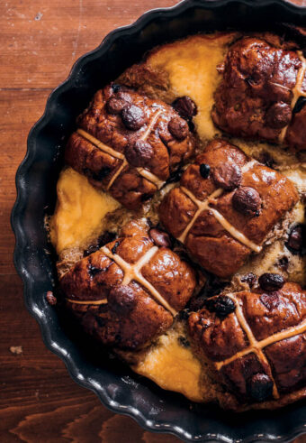 Bad bunny hot cross bun bread + butter pudding