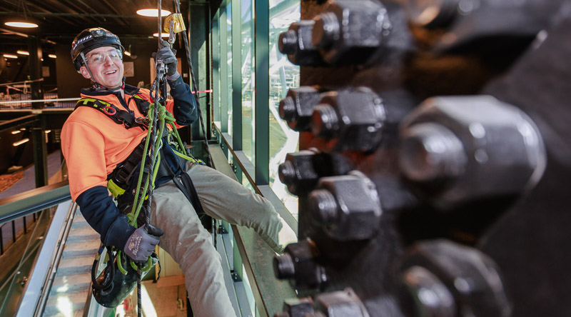 Day to day I… hung from ropes to access hard to reach locations. The main projects we worked on were the post construction cleaning and installing the smoke baffle around the bowl. This is a PVC material designed to slow the spread of smoke in the event of a fire.