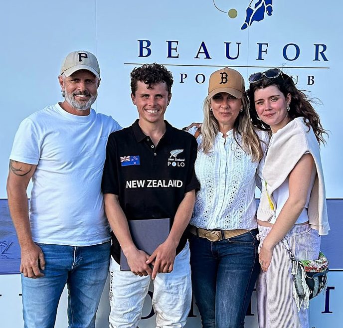 The Power family in 2024 at the Beaufort Polo Club, where Oscar represented New Zealand colts for the first time, winning the Buckmaster trophy.