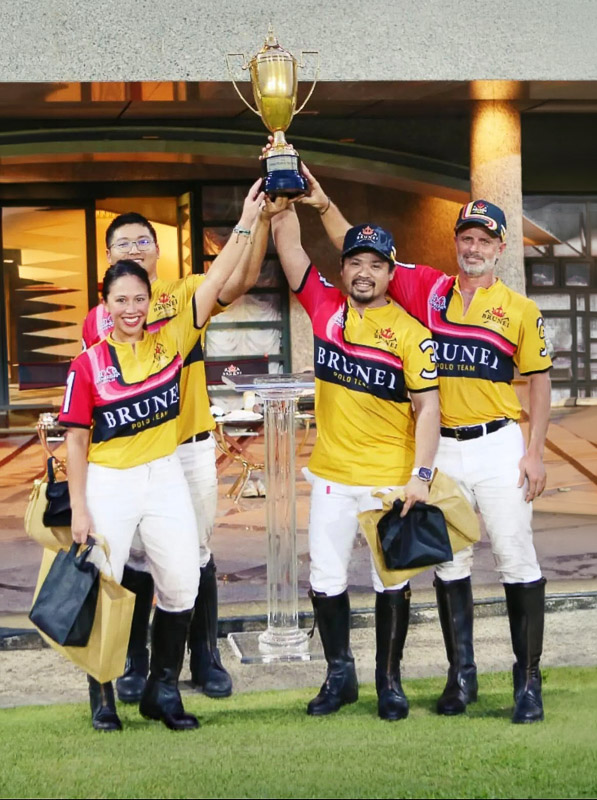 Dryden plays for and wins the 2023 Directors trophy, with HRH Princess Azemah.