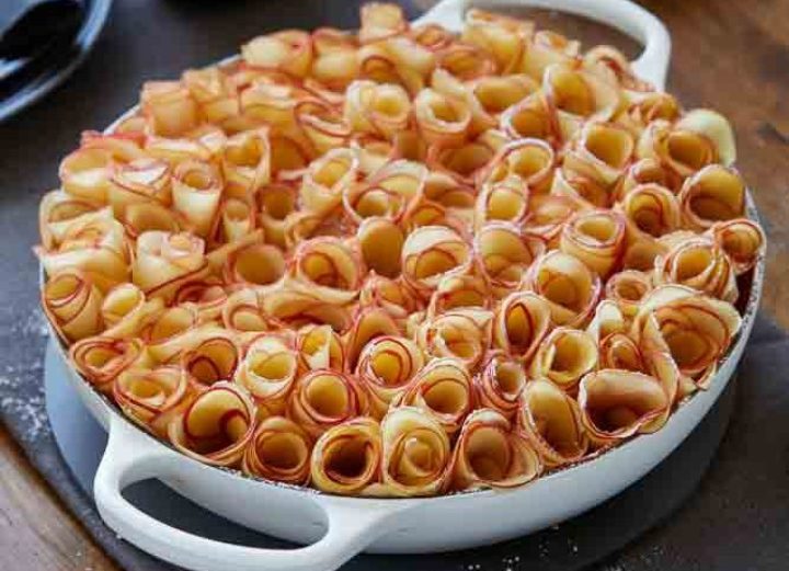 Courtesy of Le Creuset. Ingredients BISCUIT BASE 400g ginger crunch biscuits, finely blitzed 110g butter ½ jar crystallised ginger FRANGIPANE 150g butter 150g caster sugar 4 organic/free-range large eggs 2 teaspoons almond extract ¼ teaspoon vanilla paste 150g ground almonds TOPPING 20 pink lady apples, sliced with a mandoline into rounds 250ml […]