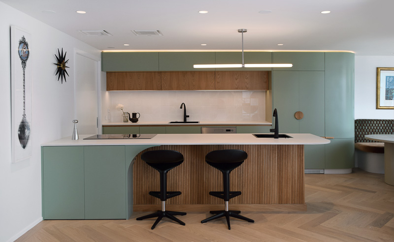 With the shifting colour palettes, Anna Blackwell of Millbrook Kitchens says mid-century is making a comeback. “We are seeing a lot of beautiful greens and warmer colours return to the kitchen, with many clients requesting a mid-century look. I would say the higher-end market has always enjoyed the style of mid-century; however, it is nice to see the mid-range market embrace the timber vibes. To do mid-century right, I recommend incorporating lots of wood, warm tones, mixed metals, and colour,” says Anna.
