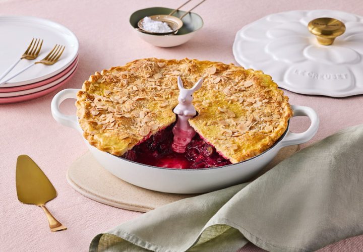 Serve up elegance this Easter. A lighter pie filled to the brim with juicy tart berries and rhubarb, it’s perfect for an Easter tea table or as a dessert topped with ice cream.