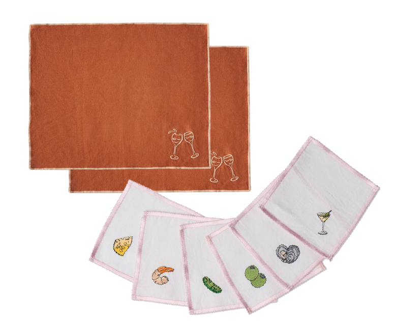 Aperitivo Embroidered 6P Cocktail Napkin Set, Kip&Co.
