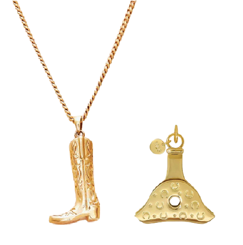 Vow Valley Pearl bracelet. Trailblazer Cowgirl Hat huggies.
